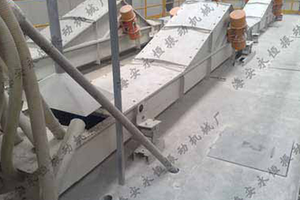 DZSF系列直線振動篩是由篩箱、篩框、振動電機、減振系統(tǒng)及座架等組成。直線振動篩是用振動電機作為振動源,固定在篩箱上兩臺相同的振動電機做相反方向自同步旋轉,振動電機所帶的偏心塊在旋轉時各個瞬間位置所產(chǎn)生的離心力之分力沿拋擲方向作往復運動
